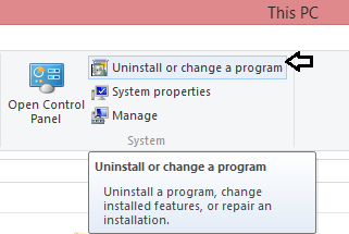 افتح ملف جهاز الكومبيوتر الخاص بك واضغط “Uninstall or Change a program”.