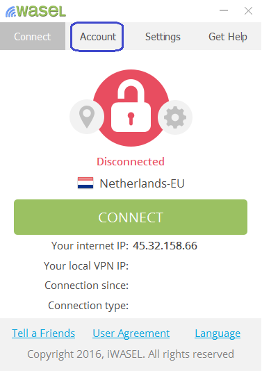 Click “Pin” button to open iWASEL Server List. Click the location you prefer then click “Connect”.